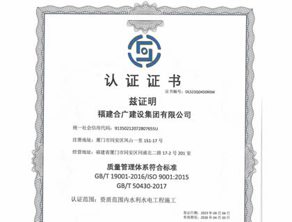 福建合廣建設(shè)集團(tuán)有限公司,注冊(cè)資本5188萬(wàn)元人民幣,公司位于廈門市同安區(qū)鳳山一里151-17號(hào)。本公司成立于2013年,公司具備市政公用工程、水利水電工程、房屋建筑工程、公路工程、園林綠化等多專業(yè)施工資質(zhì)。企業(yè)從業(yè)人員100多人,各類專業(yè)技術(shù)人員70多人,其中高級(jí)職稱8人,中級(jí)職稱40多人,一級(jí)建造師6人,二級(jí)建造師15多人。